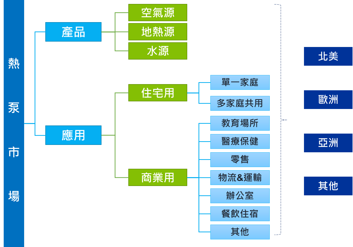 圖1:全球熱泵市場分類 (資料來源:工研院 綠能所 (2019/09))