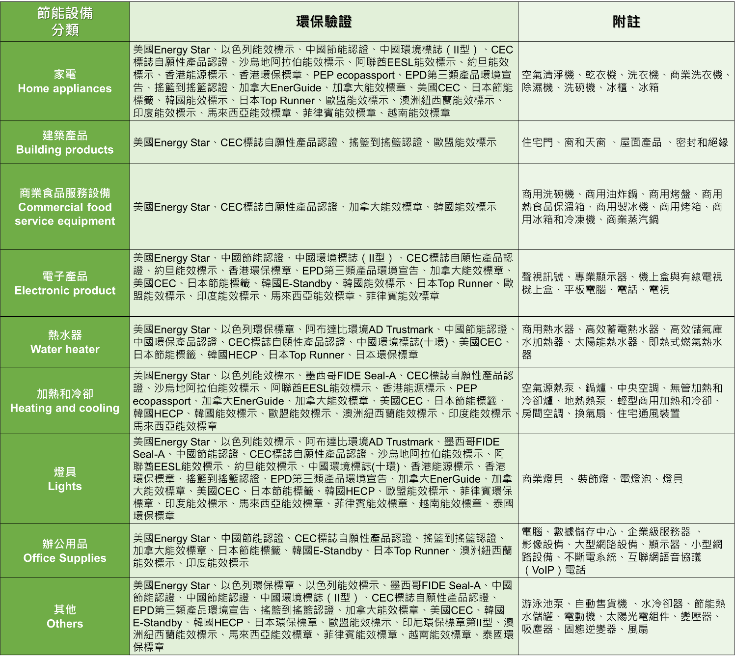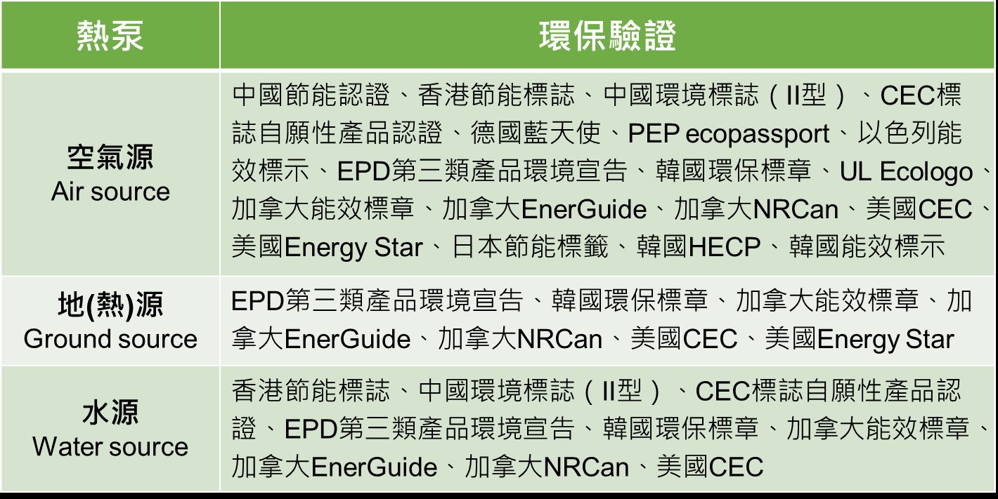 表1:熱泵環保驗證分類: