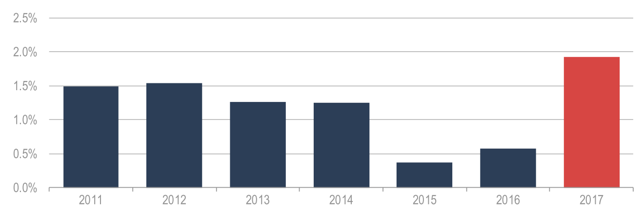 圖1:2011年~2017年全球主要能源(Primary Energy)需求增加量